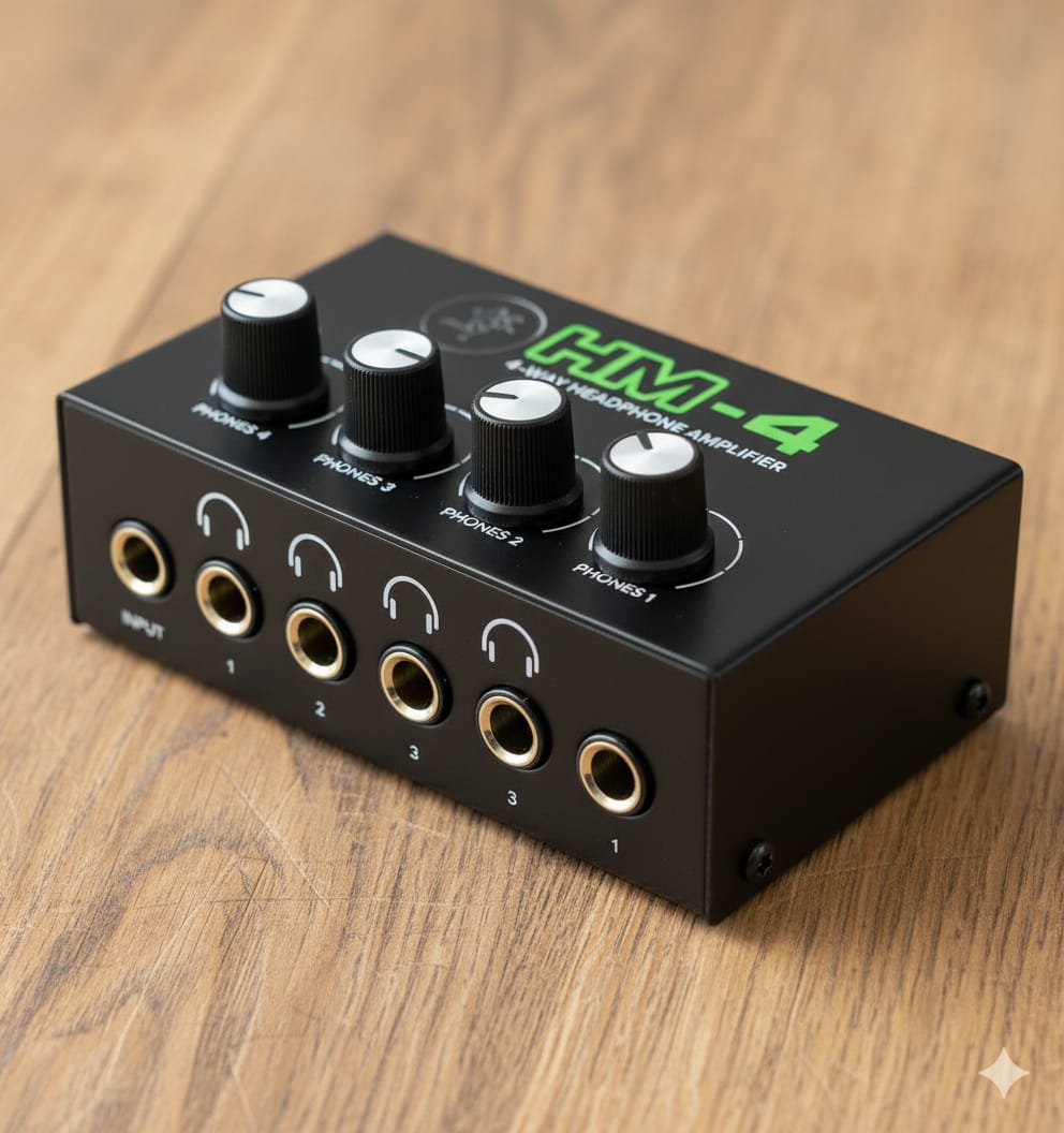 El ultracompacto HM-4 ofrece una forma sencilla pero eficaz de dividir una única señal estéreo en cuatro pares de auriculares. Perfecto para dividir rápidamente una mezcla de teléfonos en el estudio o incluso apiñarse alrededor de una tableta para ver una película en casa.