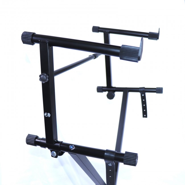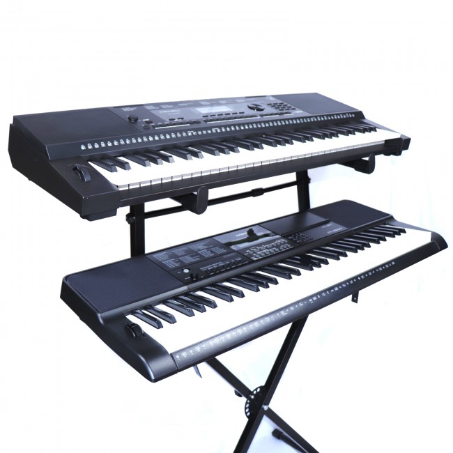 Es un soporte diseñado para acomodar dos teclados simultáneamente, ofreciendo estabilidad y comodidad. Ideal para músicos que necesitan optimizar su espacio sin comprometer la seguridad de sus instrumentos.