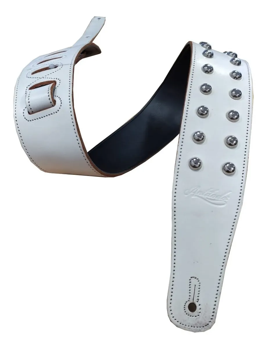 Correa Para Guitarra-Bajo 90900 De Eco Cuero Con Tachas Blanca PARQUER quantity