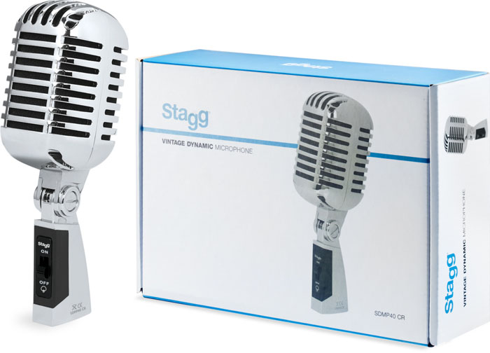El Stagg SDMP40CR es un micrófono dinámico de estilo vintage años 50/60, ideal para voces e instrumentos en vivo, actuaciones y retransmisiones. Presenta un patrón polar cardioide para reducir ruidos de fondo, una cápsula con bobina móvil (DC66), y un acabado plateado con soporte giratorio integrado, ofreciendo un sonido directo con calidez clásica.