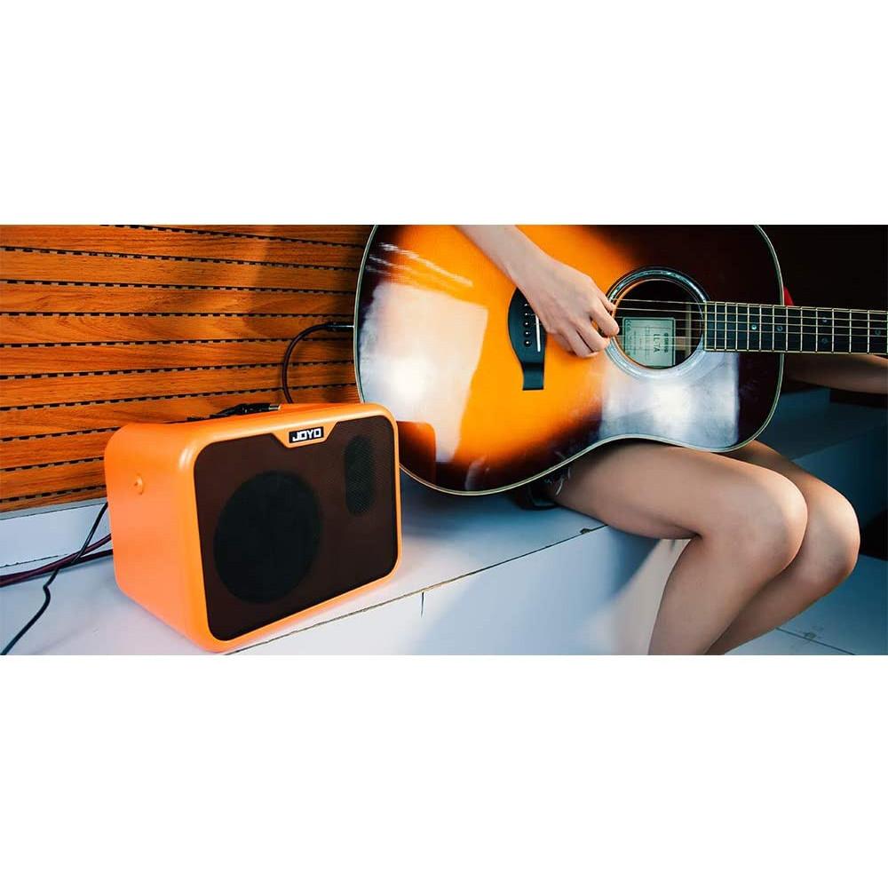 El mini amplificador portátil Joyo MA-10A es un amplificador de 10W diseñado específicamente para guitarras acústicas y ukeleles, ideal para la práctica y viajes debido a su tamaño compacto y la opción de ser alimentado por baterías.