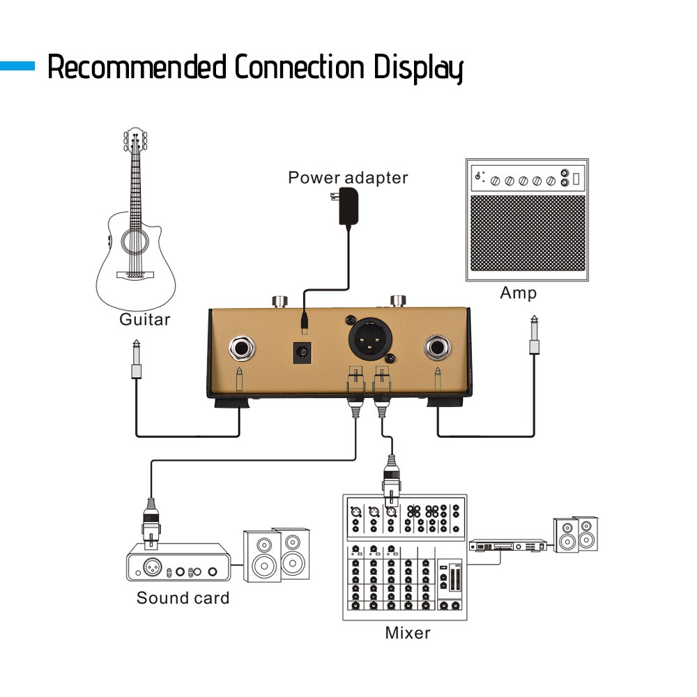Perfecto para realizar y grabar con una salida balanceada para su mezclador o dispositivo de grabación, al mismo tiempo que le permite continuar usando su amplificador acústico como monitor de escenario si lo desea. El AD-2 se puede alimentar con una batería o un adaptador de corriente de 9v CC.