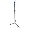 soporte metálico ligero y económico de dos tramos, diseñado con pata simple para mayor portabilidad. Presenta una altura regulable (aproximadamente entre